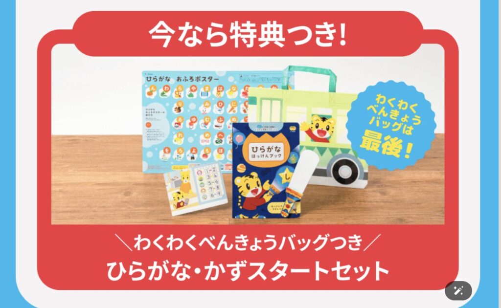 - 【3/8(日)締切】早期特典: お片付けに便利な「わくわくべんきょうバッグ」が必ずもらえる!