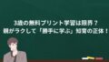 無料プリント最大の欠点は「親が横に張り付いて丸つけや指導をすること」。
