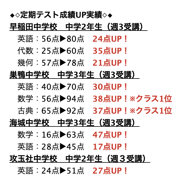 定期テストで高得点をとれる学習スキルもバッチリ身につきます。